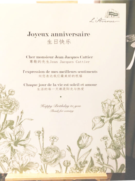 Petite fête « familiale » avec l’arrivée d’Alexandre le jour même, et amicale avec nos amis et partenaires chinois. Un dîner avait été prévu dans un très beau restaurant français nommé « l’Avenue » qui possédait bien sûr une carte des vins faisant la part belle aux champagnes Cattier.