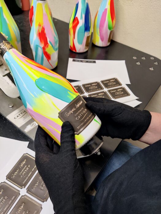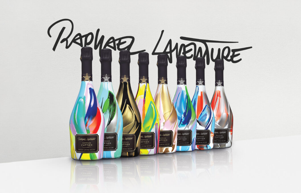 a collaboration exceptionnelle entre la Maison Cattier et l’artiste Raphaël Laventure à l’occasion de la célébration des 400 ans de notre maison. Pour marquer cet évènement il a donné naissance à une œuvre ambitieuse et artistique : 400 bouteilles de la cuvée Blanc de Blancs Premier Cru ont été peintes à la main une à une, numérotées et accompagnées d’un certificat d’authenticité garantissant son caractère unique et son statut d’oeuvre d’art.